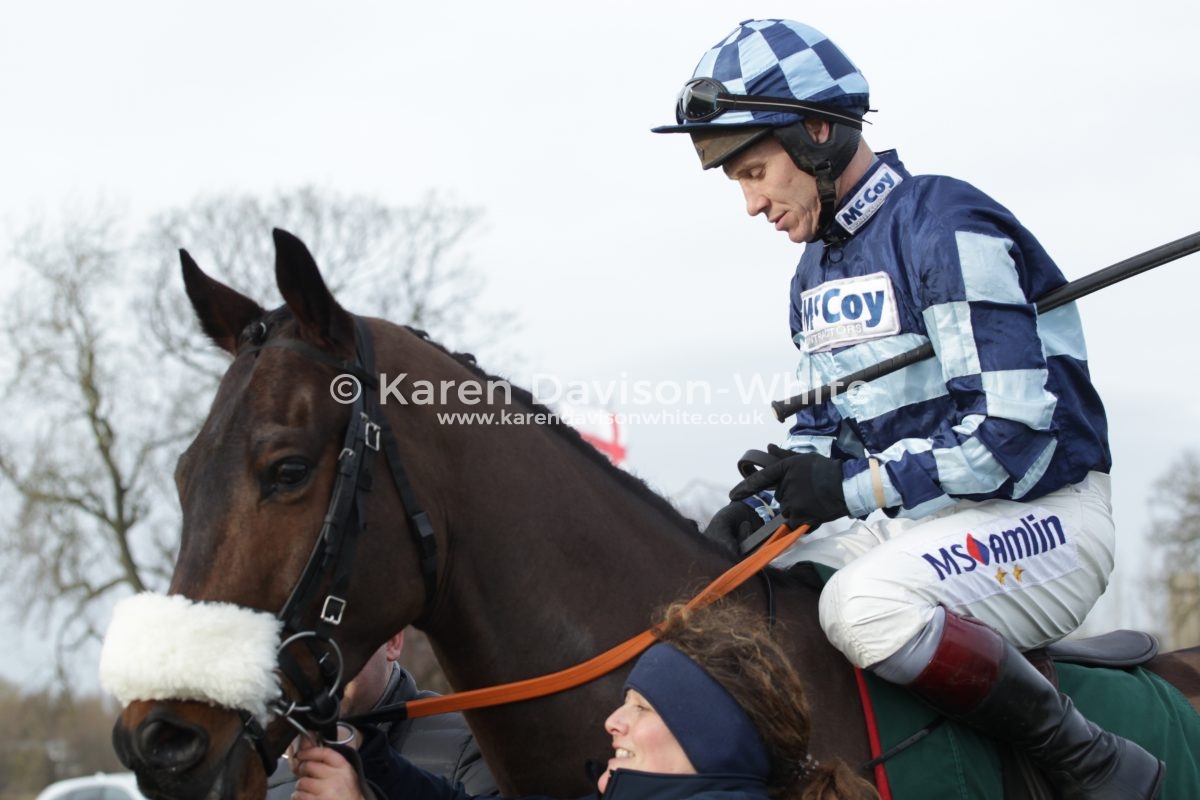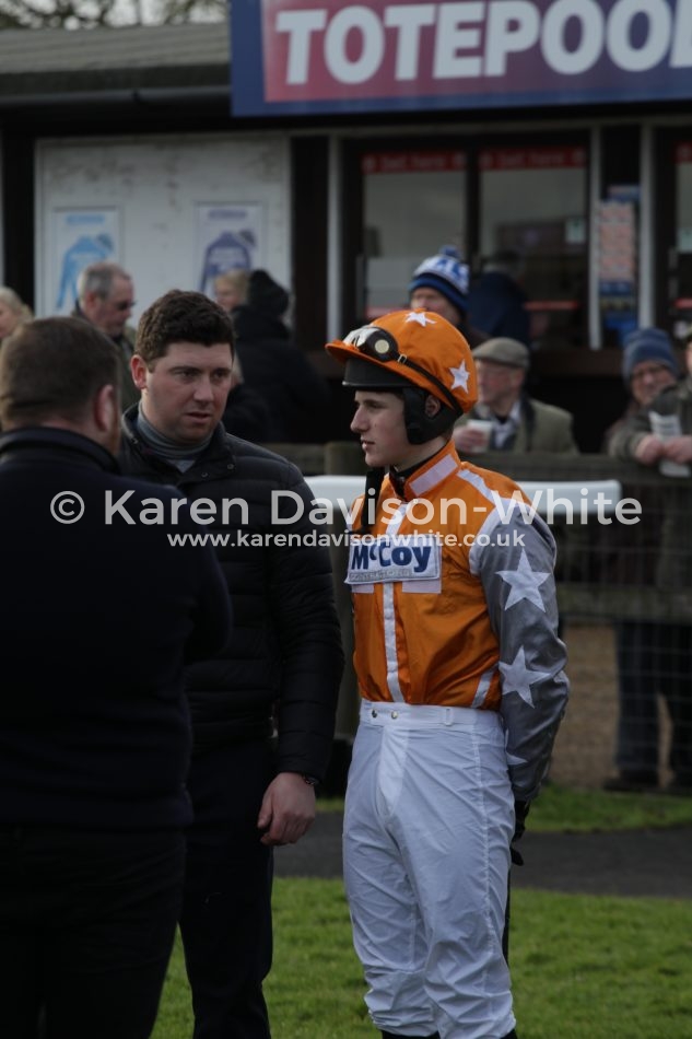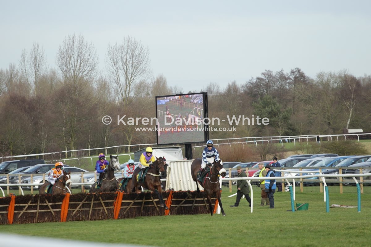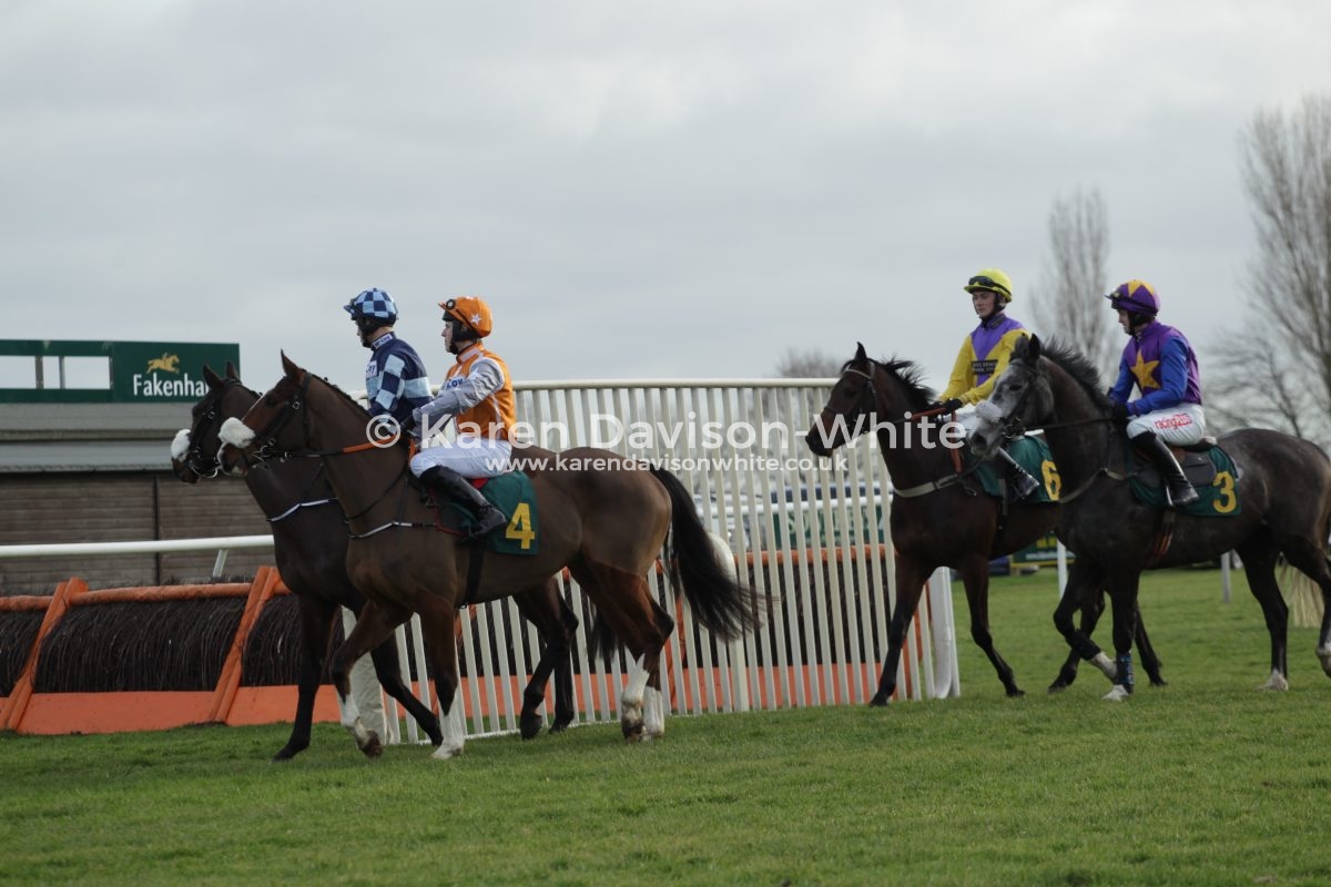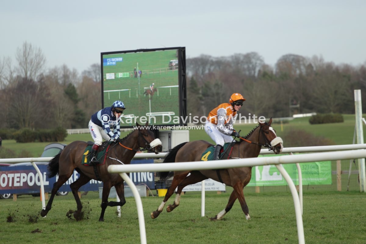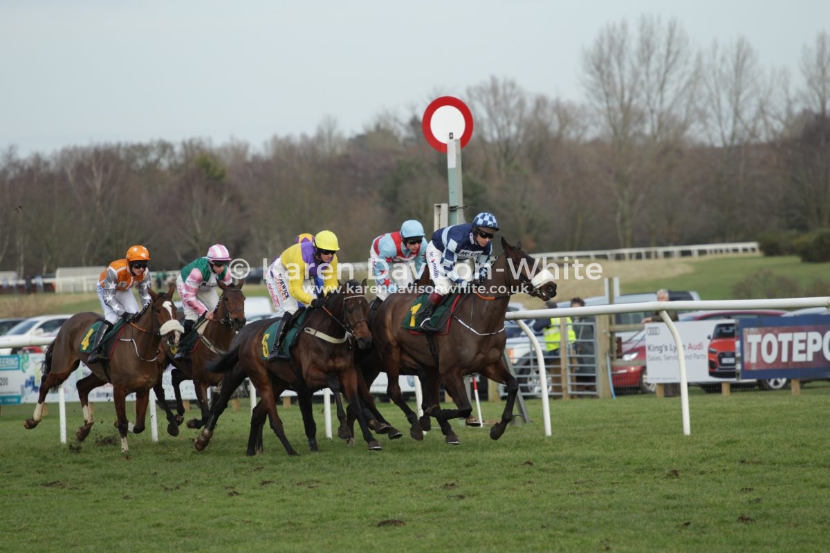 Trainer Olly Murphy had a treble at this course, leading course trainer at the moment. “Champion Jockey” Richard Johnson and Fergus Gregory (7) had a one, two (Fergus winner, the Champ 2nd) in the second race Novice Hurdle Race. Mere images – “short story” – in pictures. Not brilliant images. But love to tell a story.