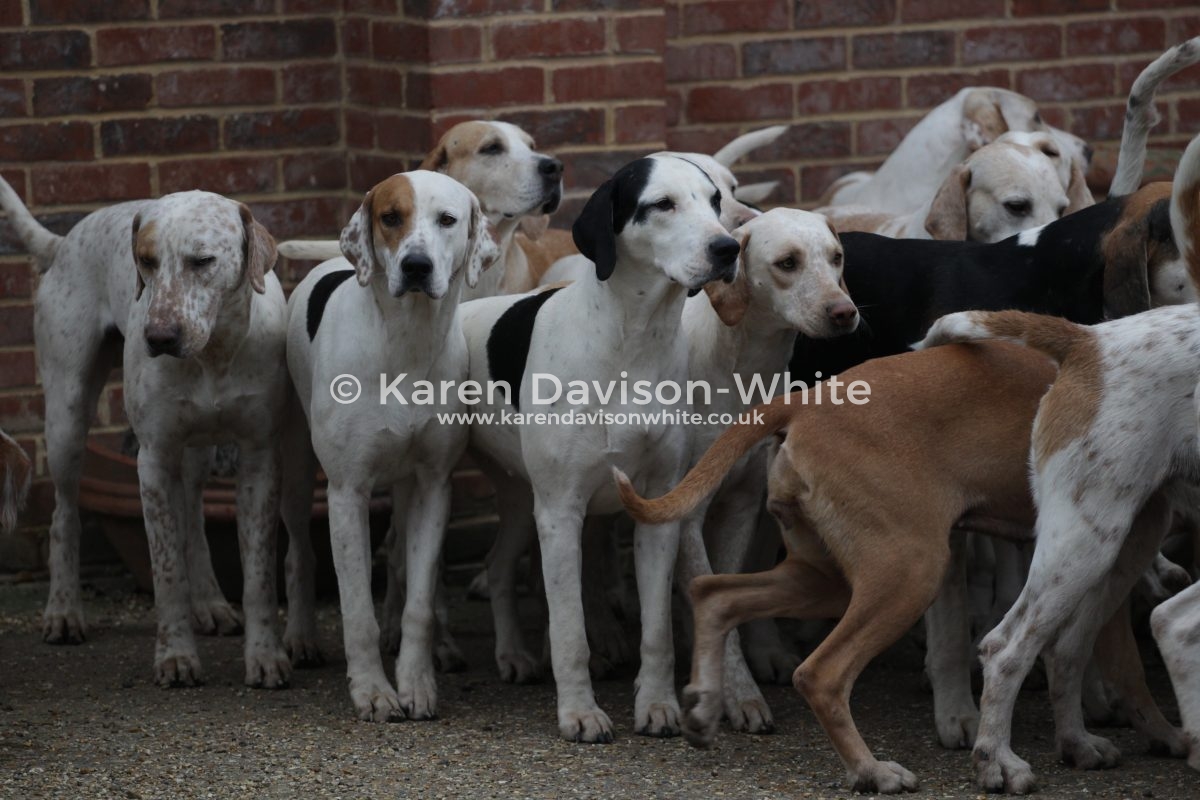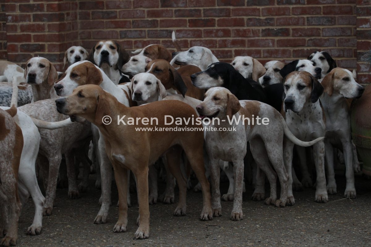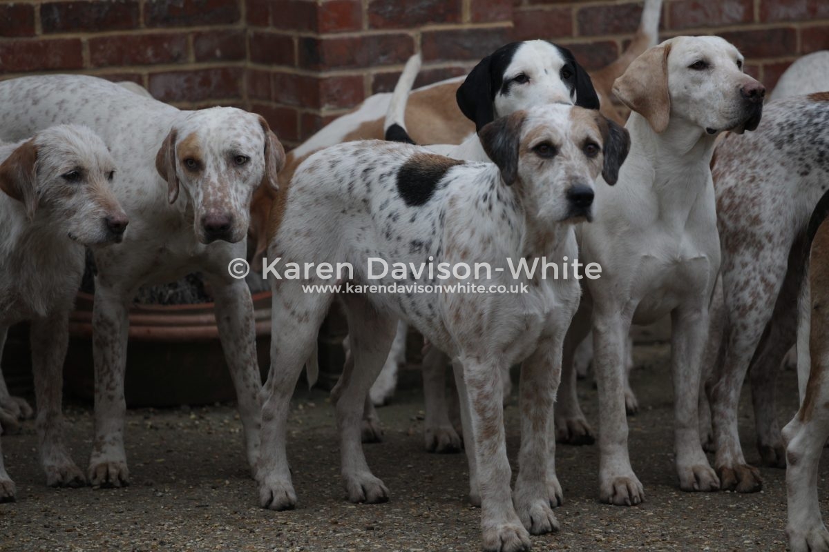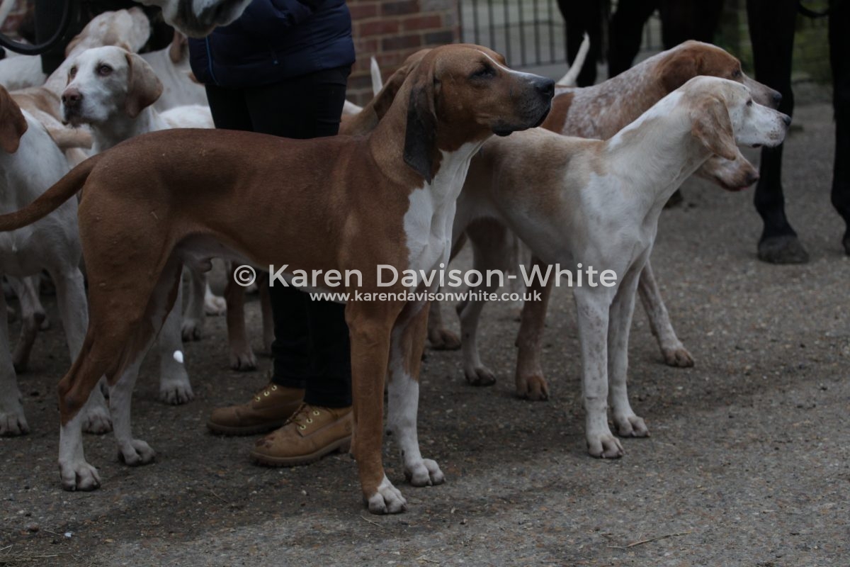 I love looking at hounds and despite being “a novice” against the “old hands” when it comes to breeding it is interesting to look closely at certain lines. The Suffolk Foxhounds are beautifully bred. Over many years by a consistent Huntsman and you would have to look to him for further information. But if you look closely you will spot the black and white hounds with a blue mottle which goes back to Carmarthenshire Nimrod (1924). Sean has introduced an American line which you can spot that are tan and white with a longer ear than the traditional Modern English Foxhound. When Sean came from the United to the Suffolk Foxhounds he brought a hound which went back to United Raider and has kept that line in kennel – he also has a line which he is particularly fond: the ST line from Captain Fanshawe – One of the reasons Fanshawe is famous; is for bringing the highly successful ST Carlow bloodline from a disbanded Irish pack to the Cottesmore, launching one of the great hunting bloodlines in the United Kingdom.