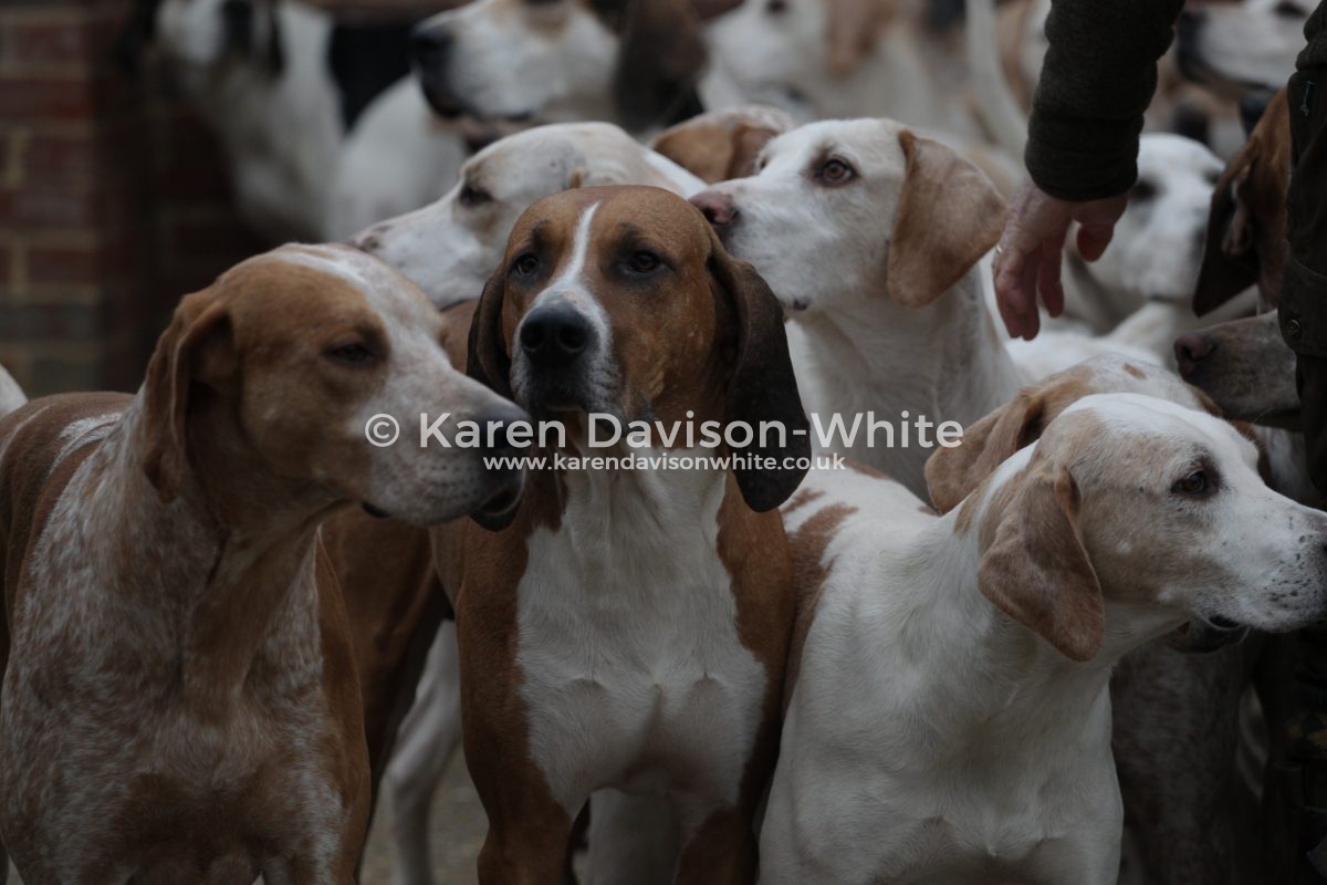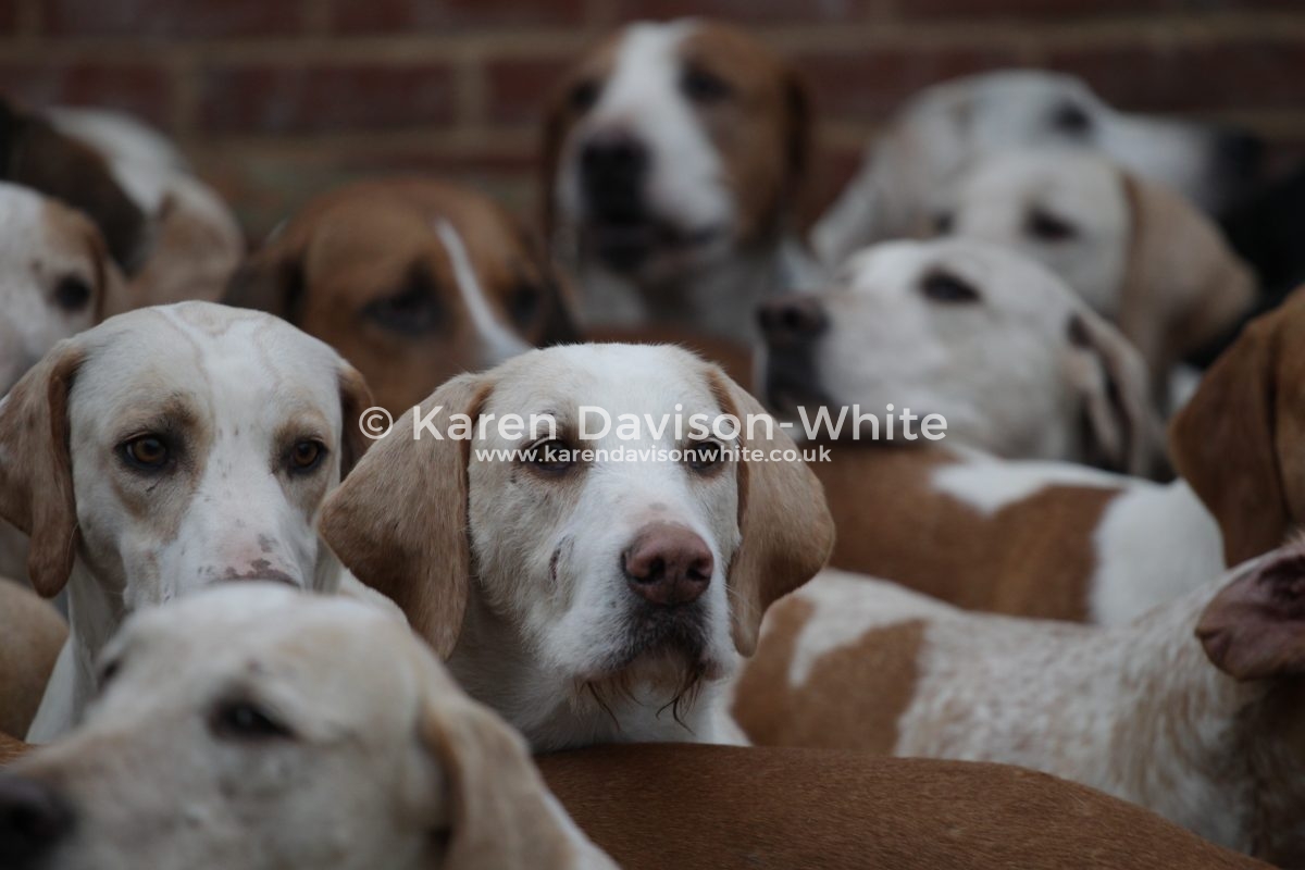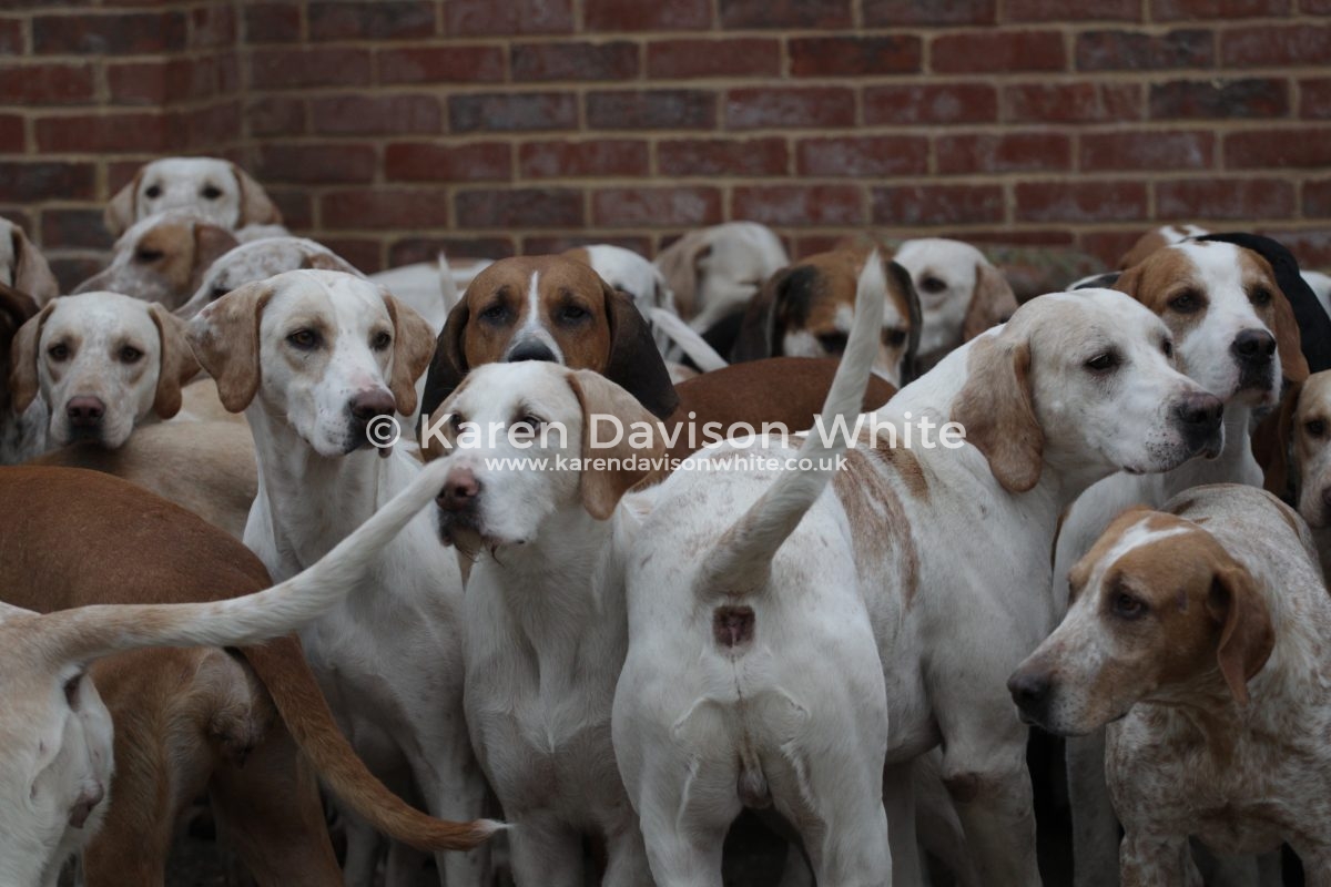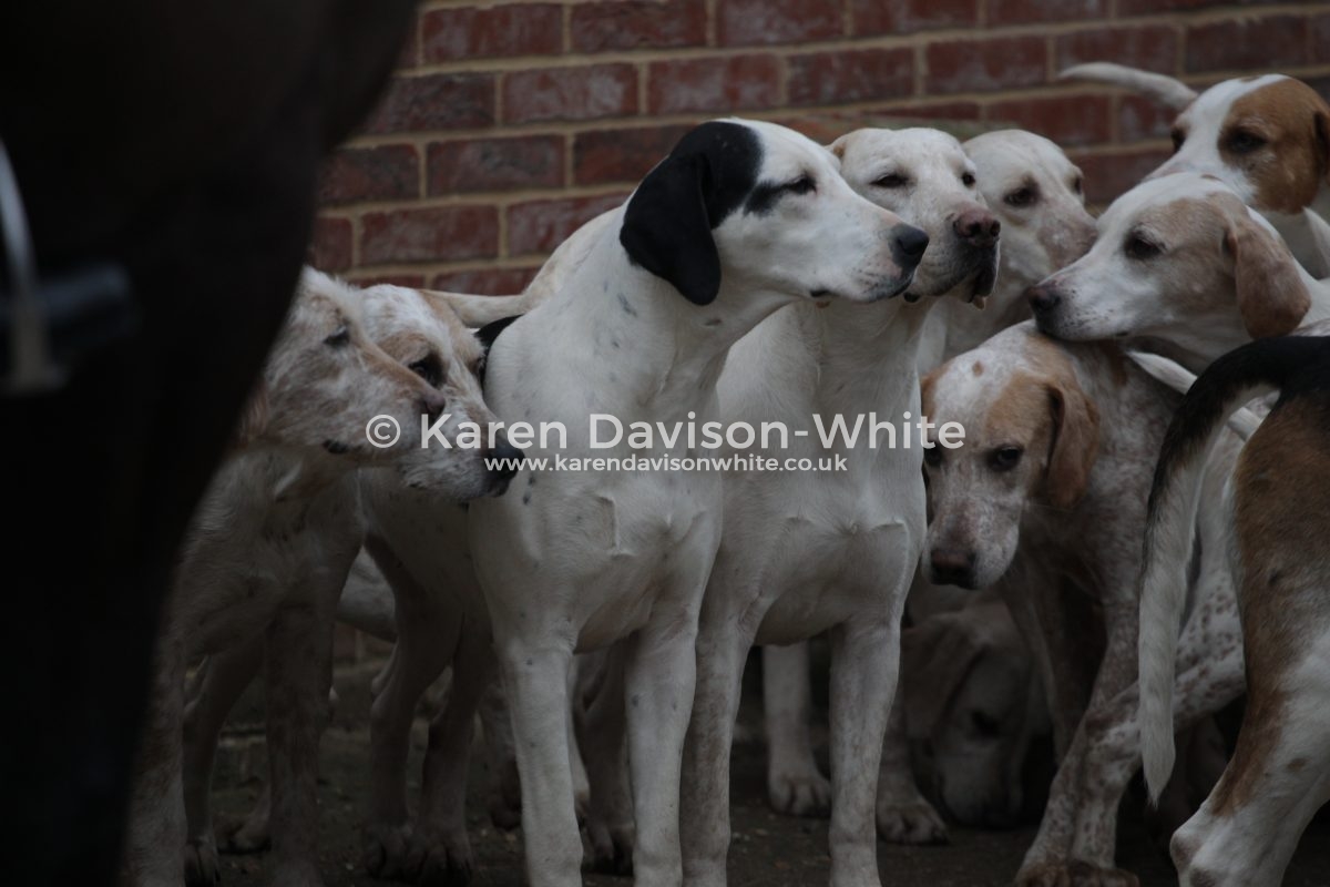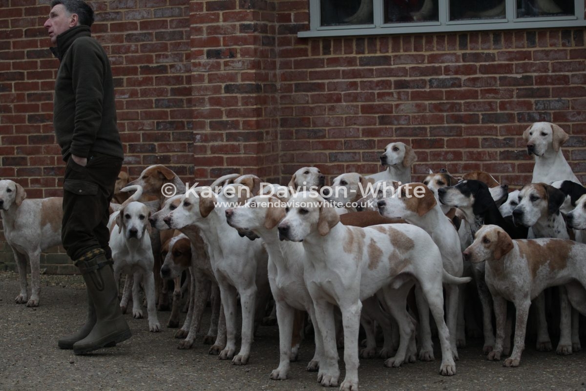 I love looking at hounds and despite being “a novice” against the “old hands” when it comes to breeding it is interesting to look closely at certain lines. The Suffolk Foxhounds are beautifully bred. Over many years by a consistent Huntsman and you would have to look to him for further information. But if you look closely you will spot the black and white hounds with a blue mottle which goes back to Carmarthenshire Nimrod (1924). Sean has introduced an American line which you can spot that are tan and white with a longer ear than the traditional Modern English Foxhound. When Sean came from the United to the Suffolk Foxhounds he brought a hound which went back to United Raider and has kept that line in kennel – he also has a line which he is particularly fond: the ST line from Captain Fanshawe – One of the reasons Fanshawe is famous; is for bringing the highly successful ST Carlow bloodline from a disbanded Irish pack to the Cottesmore, launching one of the great hunting bloodlines in the United Kingdom.