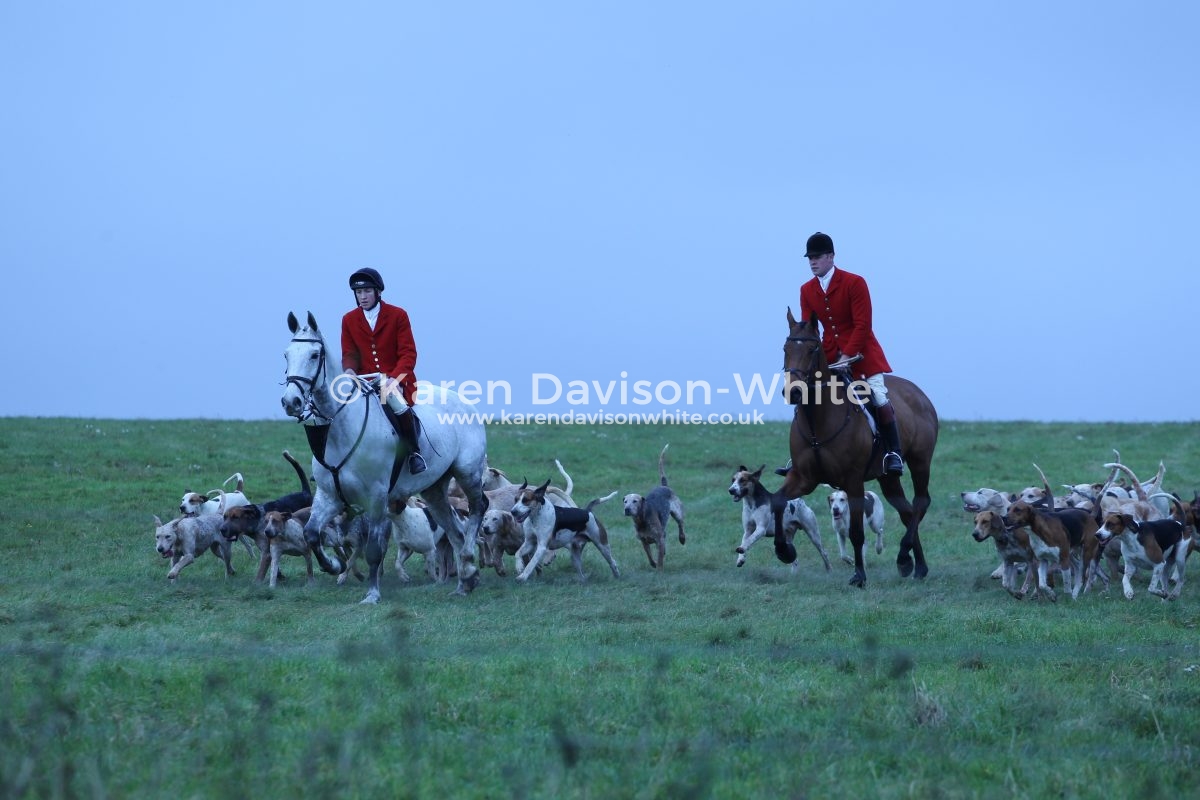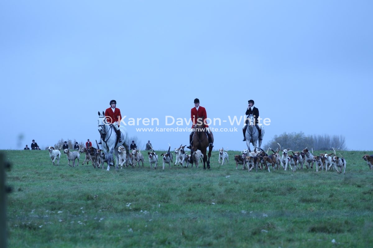 “The happiest man in England took a grey lock in his hand – And settled in his saddle like a seagull on the sand.  Then from the shadowy kennel all the eager pack outpoured, and the happiest man in England saw them scatter on the sward.  He trotted through the beeches long before the east was red, then he turned across the pasture and he gave the grey his head; And the hounds swept on beside him in a merry mottled crowd, And he blew them down the valley with a horn-blast, good and loud……………………………………………..”
